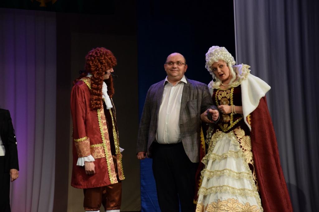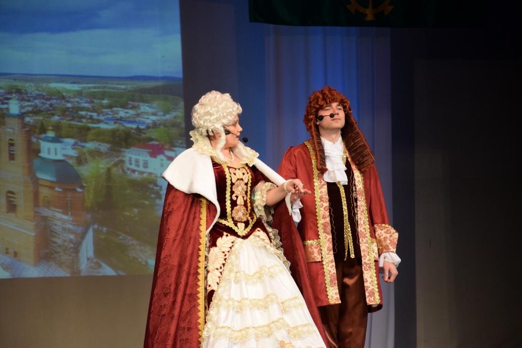 Артисты ГЦД постарались сделать праздничное выступление насыщенным и увлекательным. Вспомнили новейшую историю района, начиная с 1990 года. А в центре представления были Екатерина Великая и граф Орлов (в исполнении Аллы Мухлыниной и Александра Савичева).