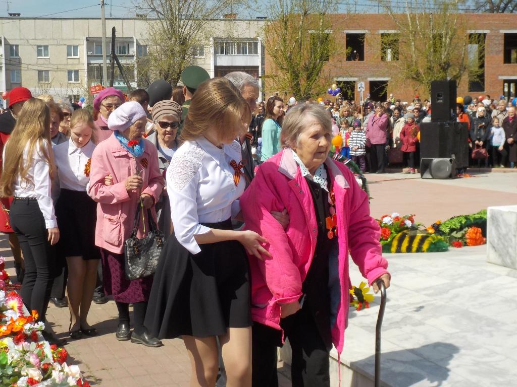 Воину-освободителю стали собираться люди. Мамы и папы с детьми в выходной день не поленились встать пораньше, прийти и выразить свое уважение к великому празднику. Приятно было видеть, что родственники и товарищи помогли добраться места встречи пожилым людям, идти им было сложно, но желание не оставаться в стороне от истории, которую они пережили и выжили, придавало им сил.