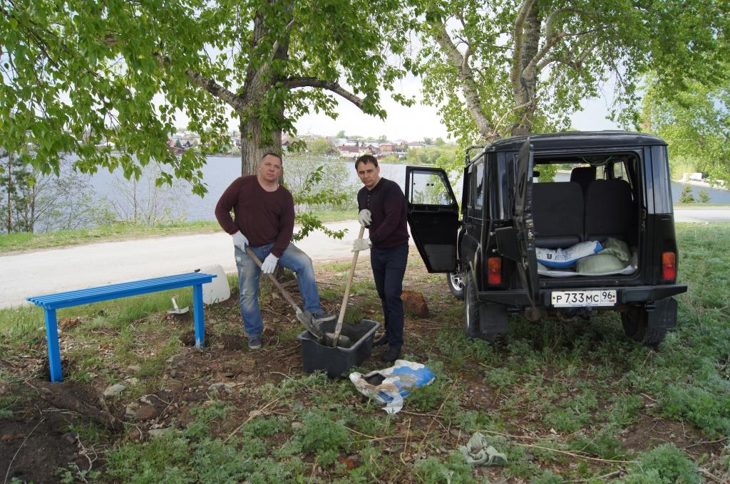 В пятницу, 26 мая, у подножия Бесеновки, по дороге к сысертскому пляжу, появились три новых синих скамейки.