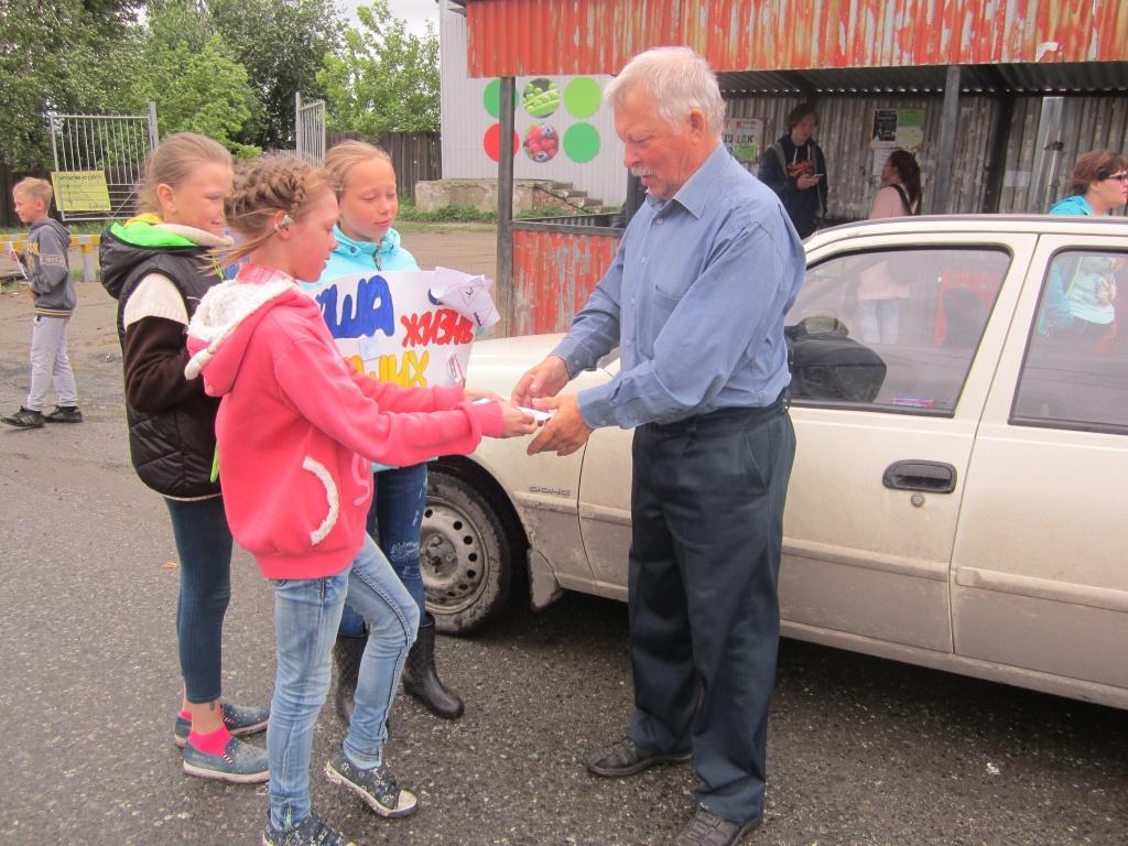 Закончилась встреча акцией «Письмо водителю». К ней готовились заранее: придумывали текст буклета, рисовали плакаты и картинки о ПДД. Несмотря на пасмурную погоду ребята вышли на перекресток возле магазина «Продукты» и вместе с сотрудниками ГИБДД раздали буклеты. «Светофорчики» обратились к водителям с лозунгом «Наши жизни в ваших руках», призвали быть аккуратнее на дорогах и соблюдать правила. Автомобилисты встречали юных инспекторов с улыбкой и отмечали важность их дела, благодарили за проявленный интерес.