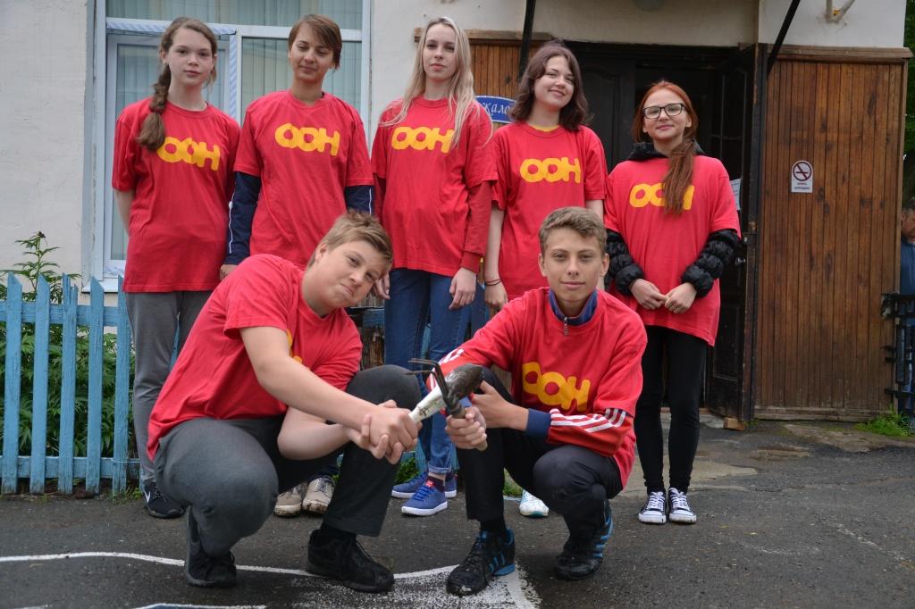 Семь девочек и трое парней – таков состав первой смены. «Отряд особого назначения» – так они себя называют. У них даже фирменные красные футболки есть. Первую неделю ребята провели, работая в палисаднике: пололи траву, садили цветы, поливали растения. Даже немного проявили навыки ландшафтного дизайна, красиво оформив клумбу.
