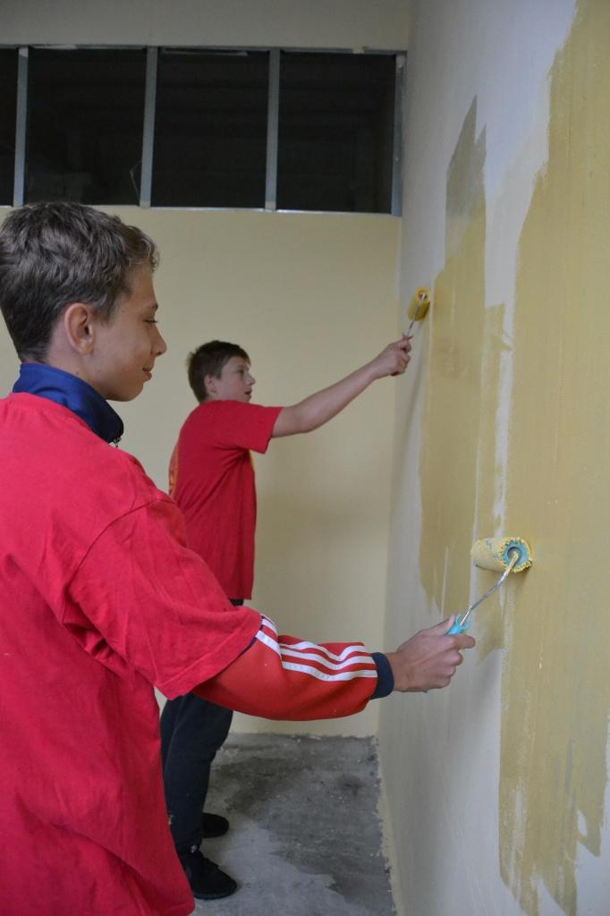 – А мы пришли, чтобы дома не сидеть и заработать свои первые деньги, – весело говорят Ваня Сергеев и Ваня Гылкэ, которые специально ездят на свою летнюю работу из Кашина, где трудового лагеря нет. – Мы ожидали более сложной мужской работы: пилить, таскать, колотить, строить. Были к этому готовы. В итоге пололи вместе с девочками, рыхлили землю, занимались уборкой. На домашних огородах привыкли к более серьезным обязанностям. Вчера шпаклевали стены и пол, а сегодня перекрашиваем стены в бывшей камнерезной мастерской – здесь будет другой кружок.