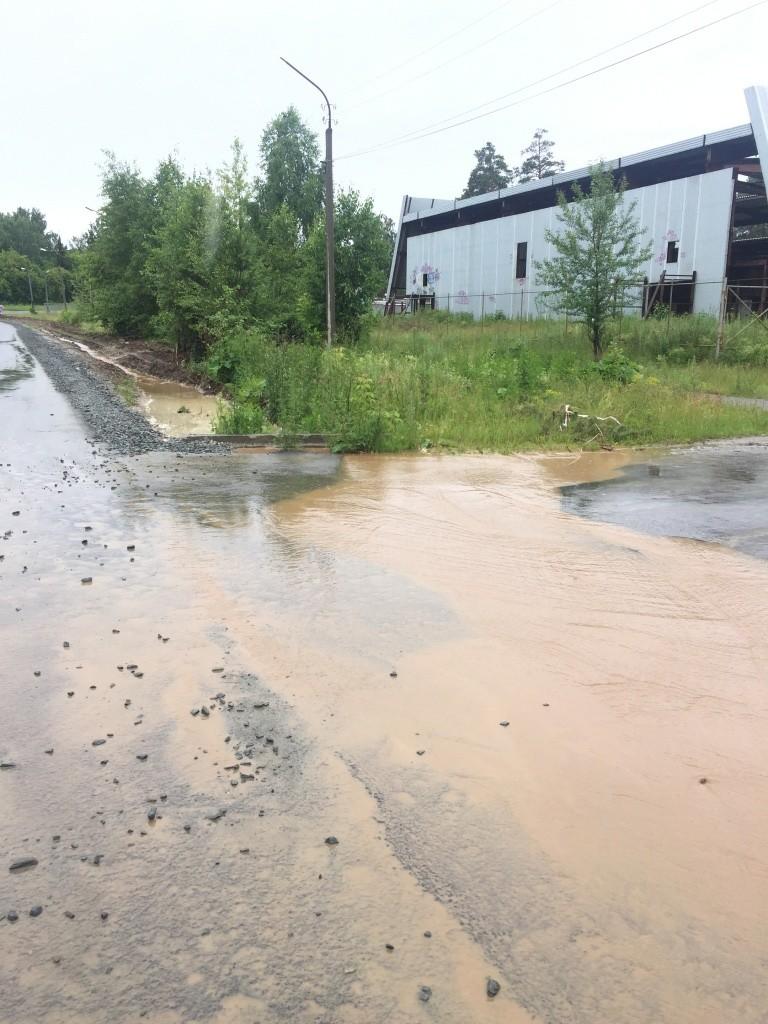 Из-за того, что не была заложена водоотводная  труба под  дорогой от многоквартирного дома Озерная, 7, примыкающей к  ул. Сосновая, идет перелив воды из кювета на дорожное покрытие. По новой дороге от самой ее высокой точки бежит целая река. А ведь впереди у нас дождливая осень, а потом зима. Мокрое дорожное покрытие лопнет. Чего нам ждать через год – неизвестно. Можно предположить, что вместе со снегом следующей зимы «растает» и новое дорожное покрытие.