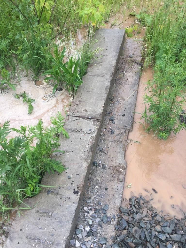 И все бы радовало, да вспоминается поговорка – хотели, как лучше, а получилось, как всегда. Первая же дождливая неделя июля выявила все недостатки новой дороги. Дренажная канава (кювет) вызывает удивление. Вся канава со стороны недостроенного ФОКа переполнена водой.