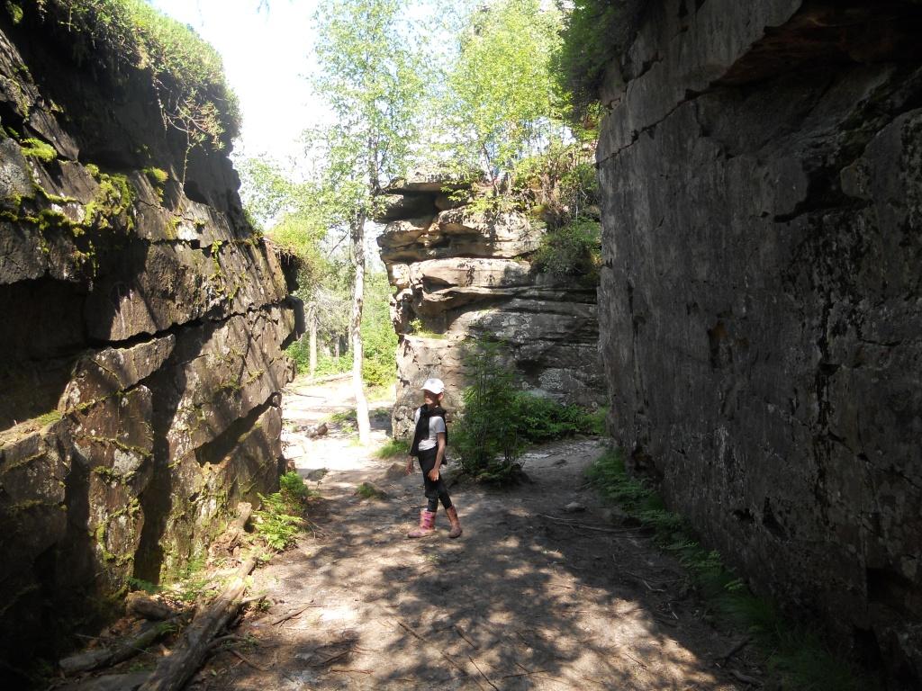 Посетили мы и памятник природы Каменный город, что в 10 км от станции Усьва. Место настолько потрясающее, что сюда приезжают туристы из разных уголков мира. Каменный город – это комплекс огромных камней, расположенных таким образом, что создается впечатление человеческого поселения. И все здесь как будто настоящее: узенькие улочки, широкие проспекты, тупики, площадь и ворота-арки. Здесь можно бродить часами и даже заплутать, если попадаешь сюда впервые. Скалы состоят из мелкозернистого кварцевого песчаника, что сделало их уязвимыми перед воздействием окружающей среды. Вода, ветер, ледник и время поработали над обликом Уральских гор, создав необыкновенный комплекс.