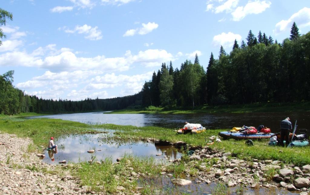 Нам повезло, по большой воде мы без особых проблем прошли Шумихинский, Усьвенский и Сухие пороги. Правда, после одного из них, катамаран наших друзей оказался разорван, пришлось зашивать и заклеивать двухметровую пробоину.