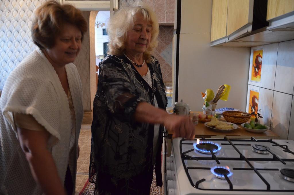 Председатель кооператива Ольга Сергеевна Кравченко в присутствии гостей впервые включает конфорку своей новенькой газовой плиты. Признается, что раньше зимовала в городской квартире. А с пуском газа останется на зиму в доме.