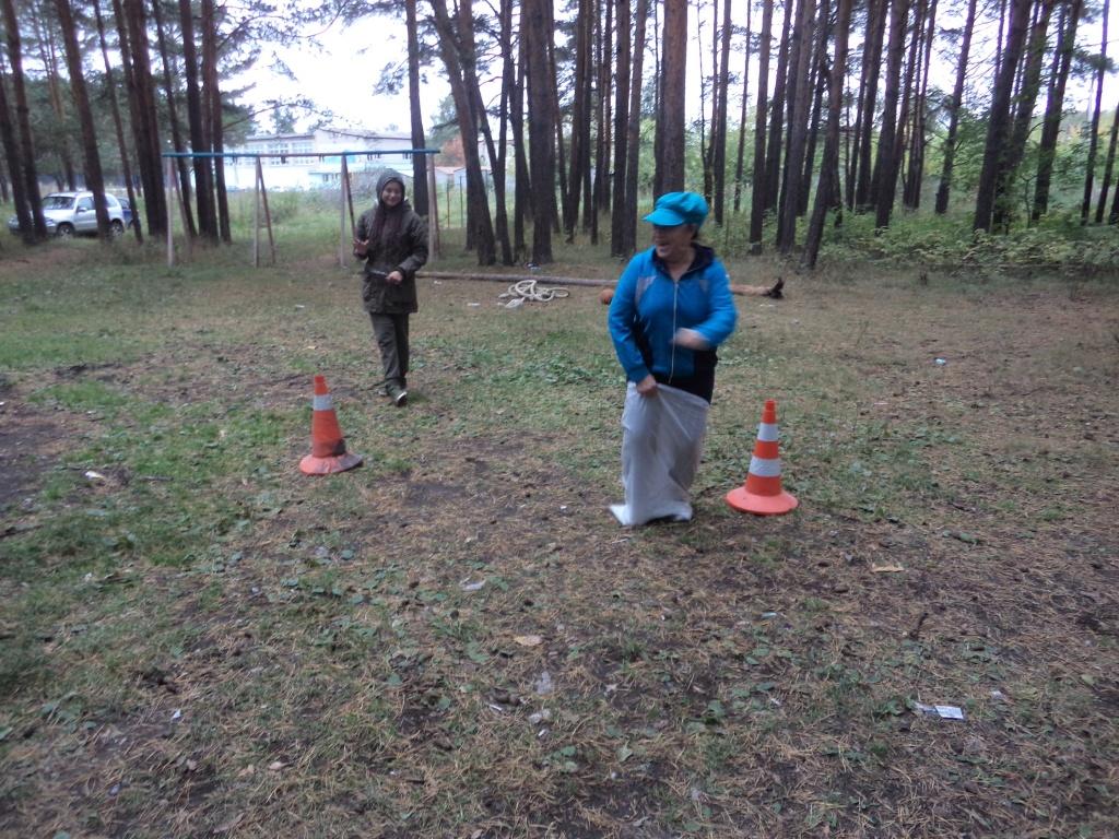 Участники состязались в прыжках в длину, метании мяча в обруч, перетягивание каната, интеллектуально-музыкальной эстафете, беге в мешках. Страсти кипели нешуточные. Борьба шла за каждый сантиметр, каждую секунду, каждую шишку.