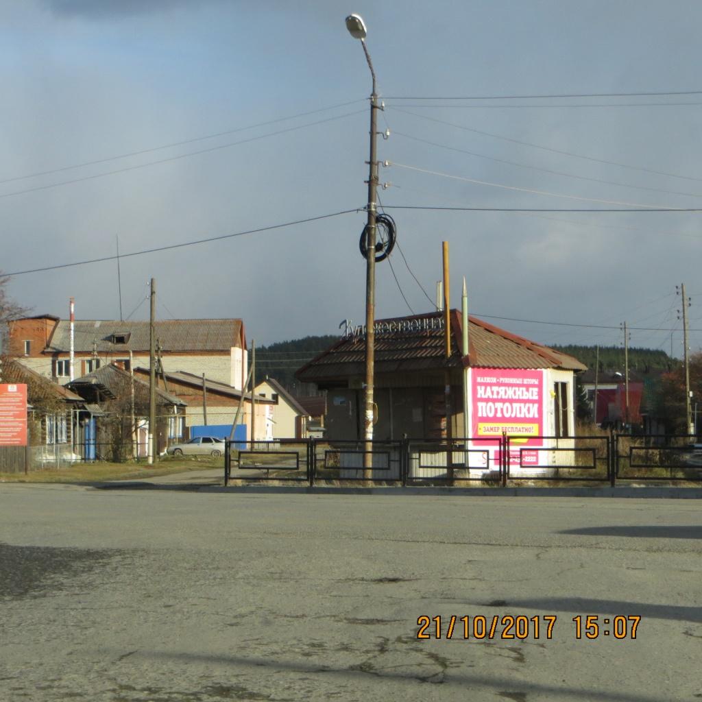 Ранее была остановка напротив автостанции. Но здесь построили магазин «Пятерочка» и на месте остановки сделали  заезд на парковку магазина. Теперь пассажиры ждут машину возле памятника воину-освободителю. Место никак не оборудовано.