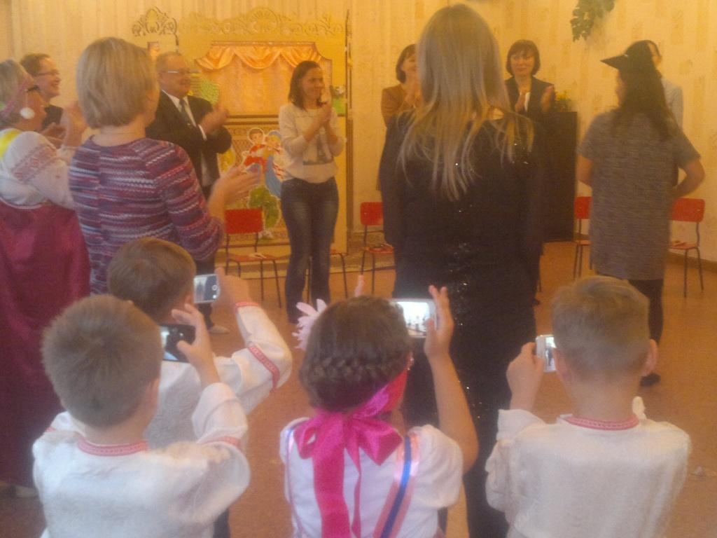 Родители представили детям кукольный спектакль «Кукареку». Весь вечер звучала русская народная музыка, проводились народные игры. Сначала играли дети, предлагая родителям вспомнить правила. А за тем родители охотно сами играли в игры, участвовали в экспромтной игре на музыкальных инструментах, в веселой импровизации песни «Жил-был у бабушки серенький козлик». Трогательно было наблюдать, как дети переживали за своих родителей: а вдруг правила нарушит, не так исполнит песню, – все было без репетиций. Как только родители пошли участвовать в играх, дети сразу взяли в руки их телефоны и начали активную съемку. В заключение праздника дети и родители отведали пирогов с яблоками, капустой, картошкой. Состоялся музыкально-литературный праздник благодаря воспитателю И. В. Крутиковой и музыкальному руководителю И. А. Масловой.