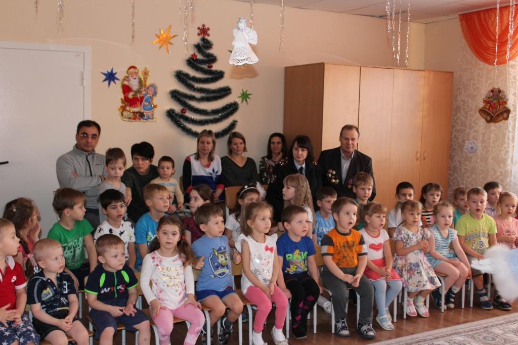 Старший лейтенант полиции А. В. Акишкина, председатель ветеранской организации А. А. Дель и представитель общественного Совета О. В. Пинаев в преддверии Новогодних праздников в игровой форме рассказали дошколятам об основах законопослушного поведения, о соблюдении правил противопожарной безопасности, дорожного движения, поведения в публичных местах. С полицейскими Дедом Морозом и Снегурочкой организовали хоровод вокруг елочки и спели песню.