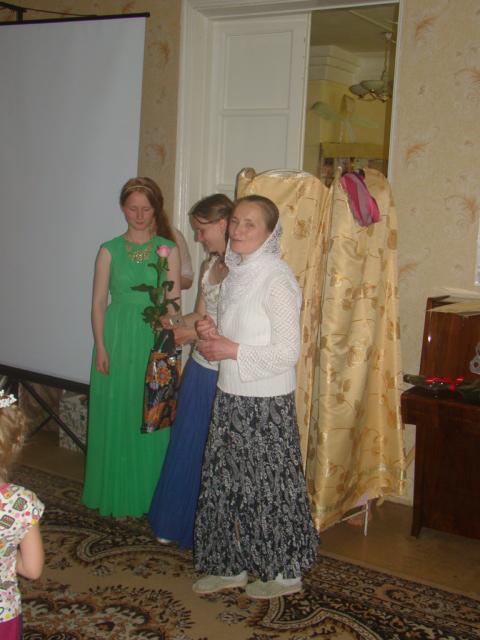 Знаток и ценитель русской песни и народного творчества матушка Татиана привозит в гости в детский дом известных музыкантов. Так мы познакомились с Любовью Аркадьевной Басурмановой, которая исполнила на гуслях старинные мелодии, русские народные песни. А сказку «Голодный волк и маленькая овечка» зрители слушали, затаив дыхание: волнующий сюжет, где добро побеждает зло, и исполнение под аккомпанемент гуслей заставили и детей, и взрослых не отрывать глаз от исполнителя. Затем Любовь Аркадьевна бережно достала народные инструменты: маленькую гармошку, 3 деревянные ложки, свирель, варган, и на каждом инструменте мастерски исполнила знакомые зрителям произведения. Особенно тронула всех присутствующих песня об Ангеле. Закончился тот концерт исполнением торжественной песни, прославляющей Россию, которую артистка исполнила с большим воодушевлением и подъемом, передав зрителям и чувство гордости за землю русскую, и глубокую веру в силу русского народа.