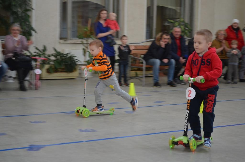 28 января в ДК им. Романенко в рамках Дня семейного отдыха состоялся заезд малышей на трехколесных велосипедах и самокатах. Юные гонщики соревновались в скорости и маневренности на дистанции с препятствиями. Из 18 малышей, заявленных на соревнование, участие в гонках принимали 15 малышей возрастом от 3 до 5 лет. Самыми быстрыми среди велосипедистов оказались Маша Суворова и Семен Королецкий. Лучше всего показали, как владеют самокатом Маша Фирсова, Саша Варданян и Тимофей Быков. После заезда ребят развлекали танцами девочки из Молодежного клуба «Поколения» (они же организовали спортивно-танцевальную разминку для ребят перед состязаниями).