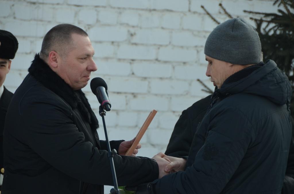 Предоставили слово и ветерану боевых действий И. В. Ушанову. Но Игорь Владимирович не стал повторяться про Афганистан. Он выразил благодарность тем людям, которые помогают общественной организации афганцев в самых разных их делах. Вот и этот митинг не получилось бы провести без военного комиссара А. В. Яковлева, без директора кадетской школы В. И. Данченко, без предпринимателя Е. А. Волкова, без сотрудников администрации СГО. К слову, один из них – В. Б. Шибаев, вел этот митинг.