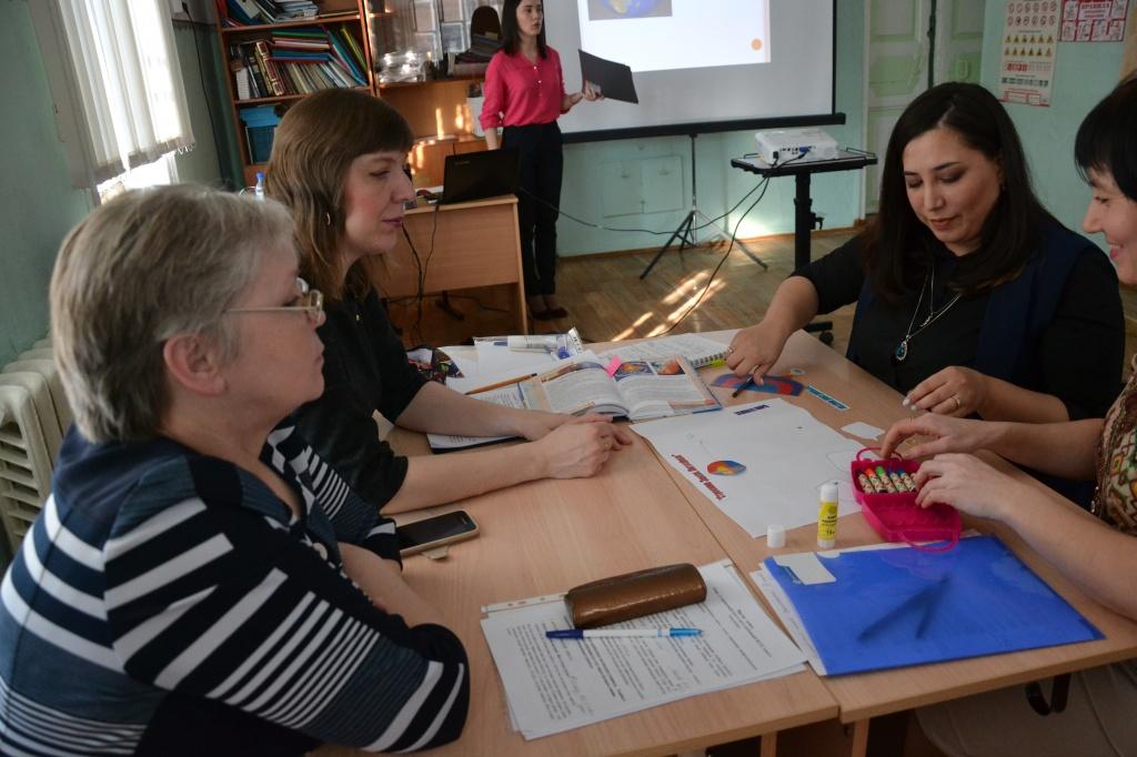 Учитель английского языка октябрьской школы N18 Инна Фаритовна Акбирова рассказала коллегам, как пополнить словарный запас аж на 85 тысяч иностранных слов всего за 15 минут. Ее цель – снять психологический барьер в изучении языка, и показать, что английский – это легко. Инна Фаритовна поделилась, что ее любимая форма обучения – это песня, так как она увлекается вокалом сама, и поэтому прививает ученикам любовь не только к английской речи, но и к музыке.