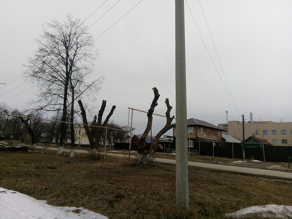 Прошу дать ответ  через «Маяк»: на каком основании провели такую безобразную «обкарновку» деревье?  И чем их предполагается заменить? И когда?
