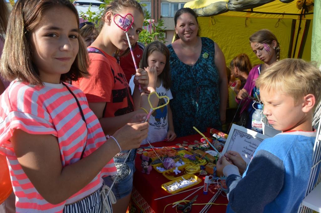 Но помимо основной сцены работали и дополнительные, где тоже происходило немало интересного – все согласно заявленной программе: концерты, игры, флешмобы, соревнования, фестиваль красок. Сквер вновь превратился в целый город мастеров, где можно было приобрести изделия ручной работы, научиться изготовлению поделок, поиграть в напольные шахматы и нарды, поучаствовать в голосовании за лучшее швейное изделие.