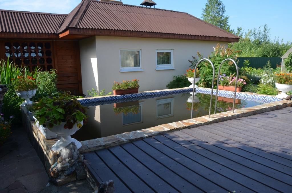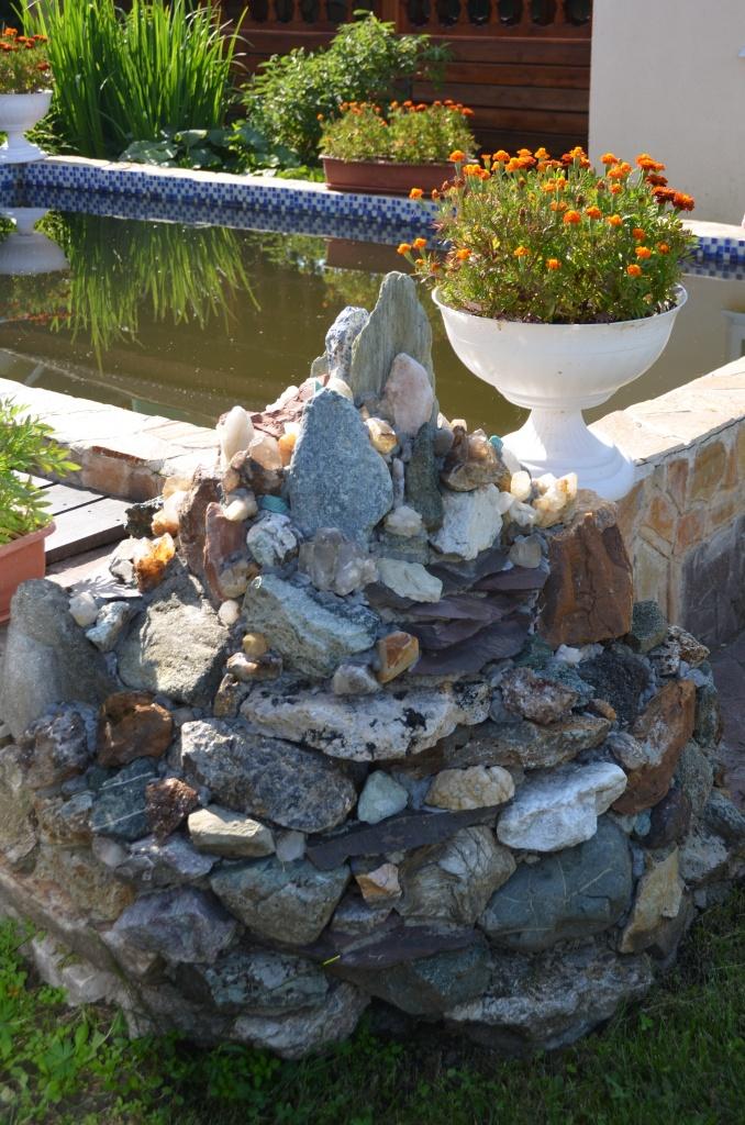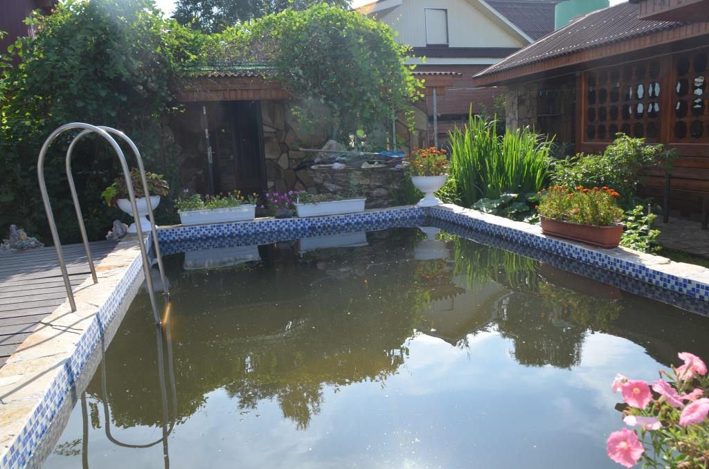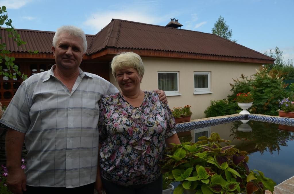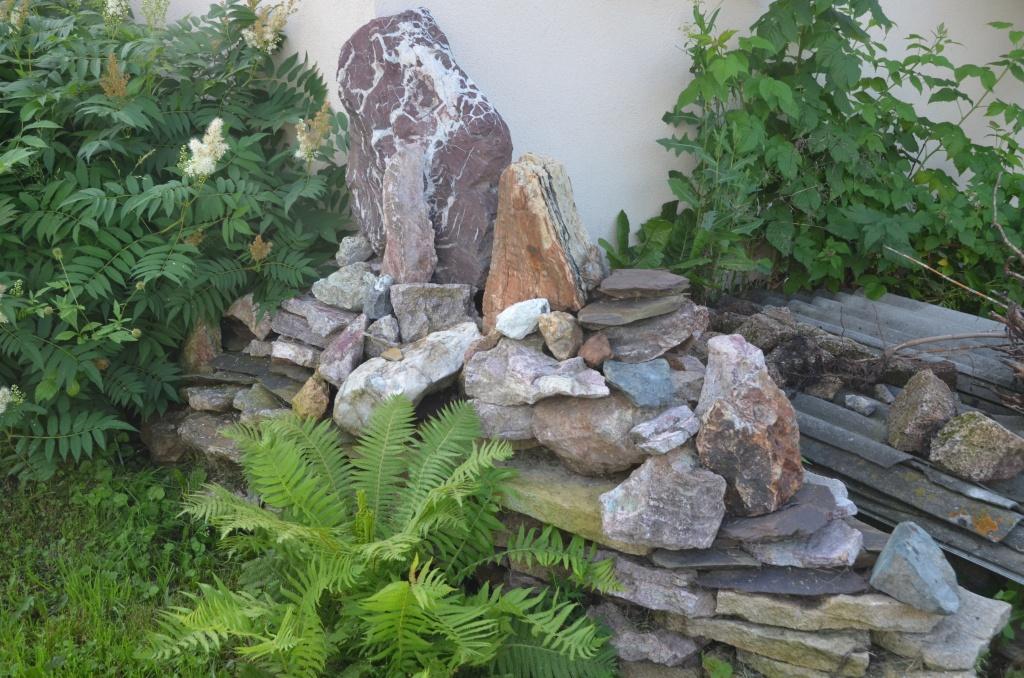 Но самое привлекательное и удивительное, конечно, сделанный своими руками бассейн. Его размер – три на пять метров, глубина – полтора метра. Бабушкиным после праведного труда, чтобы искупаться в жаркий день не надо спешить на речку или пруд, здесь все свое. А как украшена прилегающая к бассейну территория! Оказывается. Александр Павлович – камнерез, в свое время окончивший 42-е художественное училище в Екатеринбурге. По специальности долго не работал, но камни любил всегда (по оформлению усадьбы, это видно), и в 50 лет стал заниматься ими плотно. И собирает камни – есть экземпляры из Нижнего Тагила (специально сам ездил на отвалы), из Башкирии… И изделия из них делает. Увлек коллекционированием камней и сына. Времени камни отнимают много, не хватило, чтобы реализовать еще одну давнюю мечту – завезти голубей. Александр Павлович сделал парочку птиц из камня, изобразив их на фоне земного шара, что находится на входе из огорода во двор. Но отличную баньку своими руками построил и сейчас рядом с ней делает беседку. Резьба по дереву также под силу мастеру, так что творческий процесс в семье продолжается.
