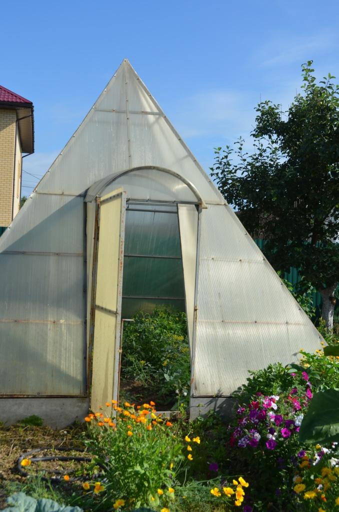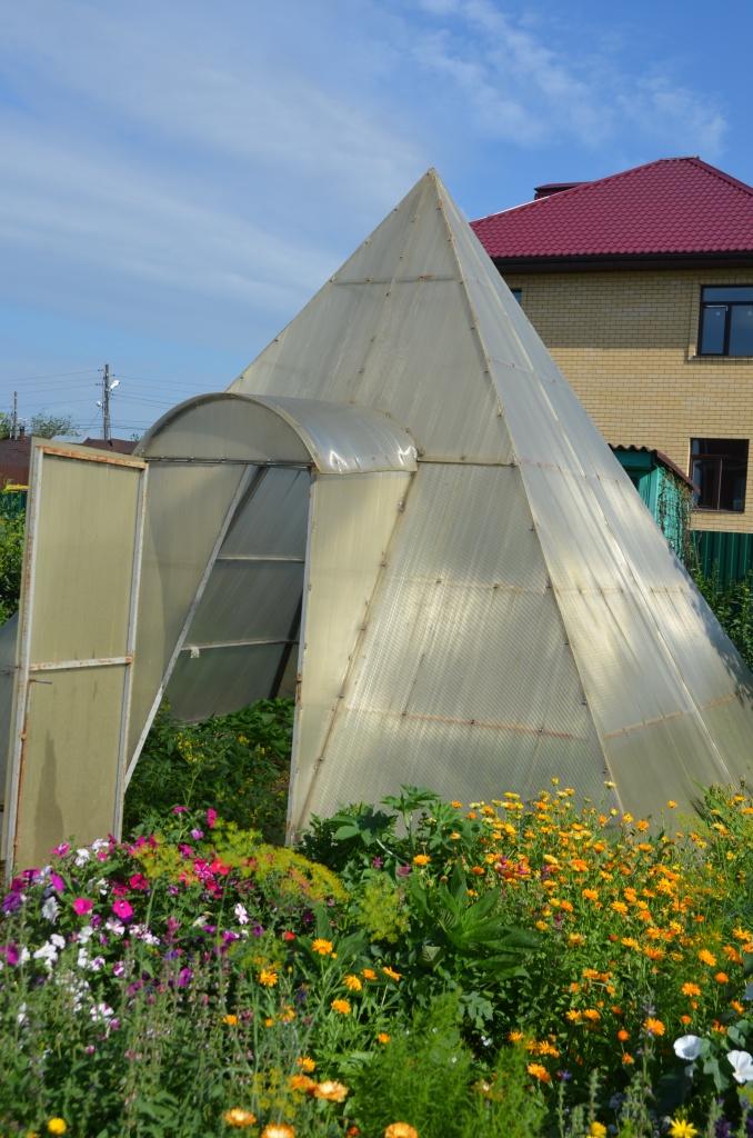 В этом доме Александр Павлович и Ольга Павловна Бабушкины живут десять лет. Их усадьба раньше практически ничем не отличалась от других. Картошка да грядки, – говорит Александр Павлович. Но они, люди творческие, сразу же взялись за переделку. И преуспели. И дом сейчас выглядит отлично, и огород (общая площадь 18,5 соток), в котором нет ни одного неухоженного уголка: есть где поработать и где отдохнуть. В теплице площадью 32 кв. метра отлично уживаются вместе и огурцы, и томаты, и перцы. Во второй, похожей на пирамиду, выращивали всегда арбузы и дыни.