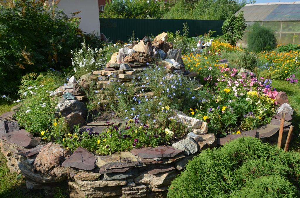 В огороде – разнообразие культур, есть все, кроме сорняков, с которыми в этом году многие не могут справиться. И, конечно, море цветов, преимущественно однолетних, Ольга Павловна их очень любит, особенно георгины «Веселые ребята», львиный зев, портулак, иберис, бархатцы. Из многолетних – пионы. Все однолетки выращивает через рассаду сначала на окнах, затем переносит в телицу – пирамиду. Чем подкармливает? Только коровяком и золой, как и все растения в огороде, никаких промышленных удобрений не признает. Растет все отлично. Сказывается опыт – Бабушкины землю любят и умеют на ней работать, сразу как поженились, купили два садовых участка. Потом жили в своем доме, который сейчас, переехав в родительский, оставили сыну. Ольга Павловна проводит в огороде все свободное от основной работы время – выходные дни и вечера.