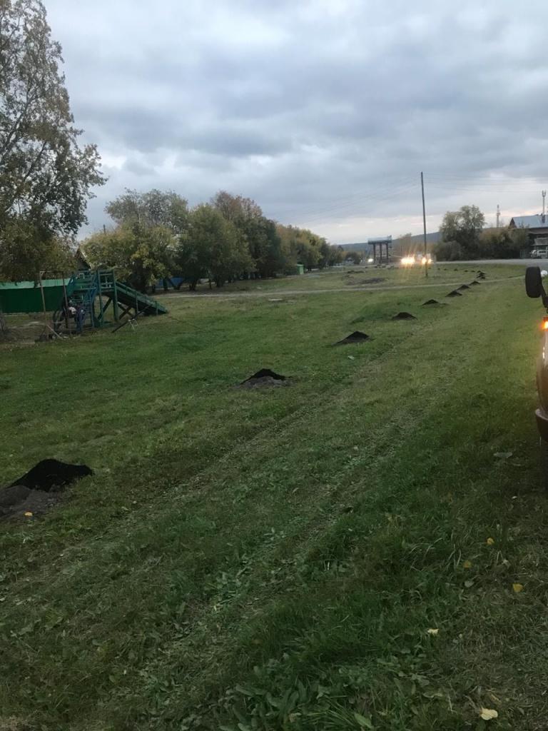 Накануне Константин Заякин и Андрей Антропов организовали бурение 100 ямок для высадки саженцев, завезли плодородную землю. 100 саженцев краснолистной яблони и рябины выделила Екатерина Разносчикова.