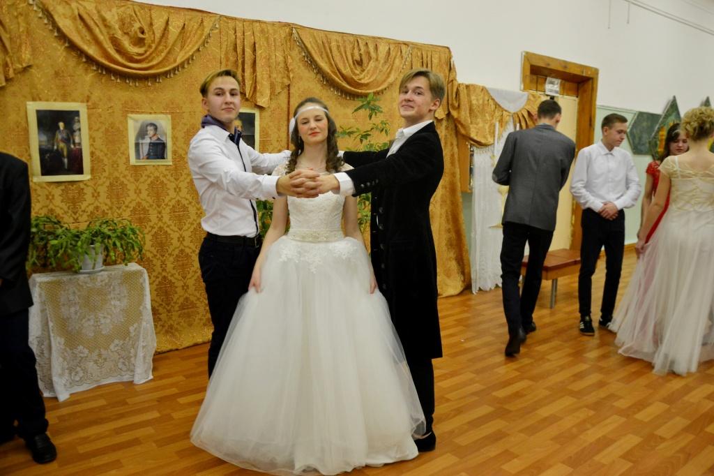 Так началось традиционное мероприятие Бажовки – светский бал. Ученики и учителя окунулись в атмосферу балов Серебряного века. Весь вечер гости танцевали полонез, вальс, котильон, польку. И, конечно, не обошлось без любимой игры того времени – «Ручеек». Юным дамам и господам предлагалось поучаствовать в салонных играх «Фанты», «Цветочная почта», также школьники познакомились с «Языком веера». Звучали классические романсы и поэтические произведения. Не забыли об еще одной традиции светских балов – театрализованной постановке.