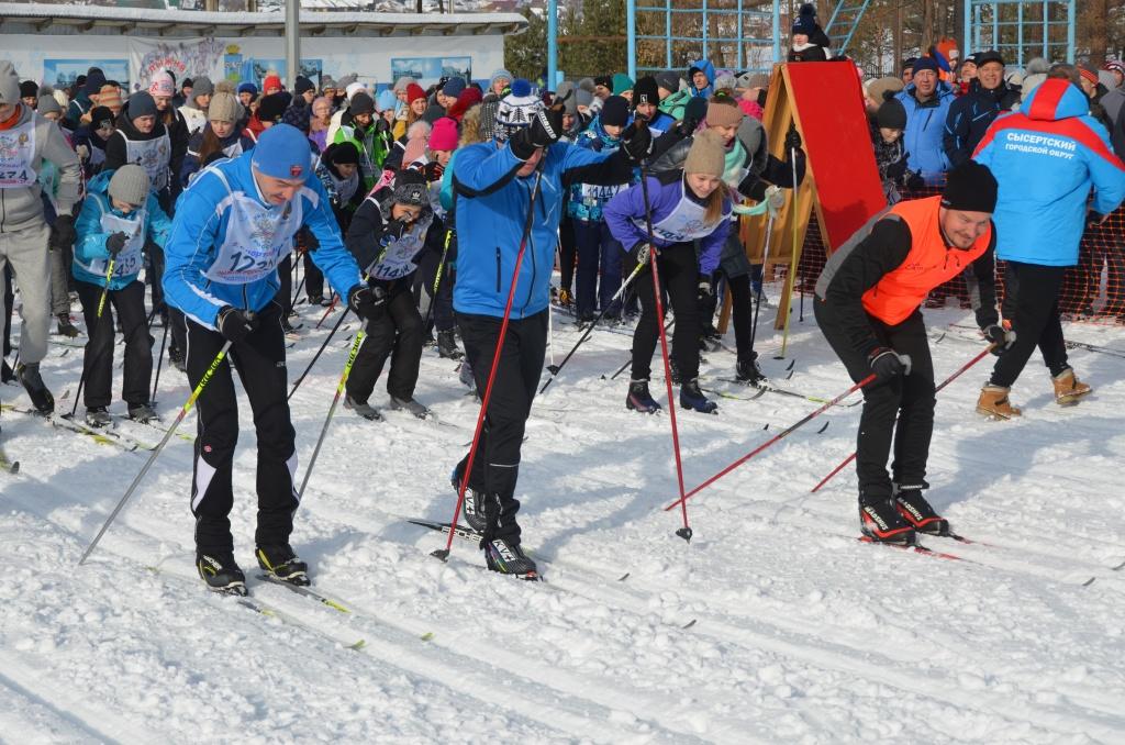 Вскоре к спортшколе подтянулись целые колонны школьников и педагогов, вооруженных лыжами. Все они вышли на массовый старт, флагманами которого стали видные люди округа, среди которых глава администрации Д. А. Нисковских, начальник отдела экономической безопасности полиции А. М. Слободчиков, руководитель следственного отдела СКР по г. Сысерть Р. И. Щемелев. На финише всем участникам вручали фирменные сувениры – брелоки, ручки, значки и шапки с символикой «Лыжни России».