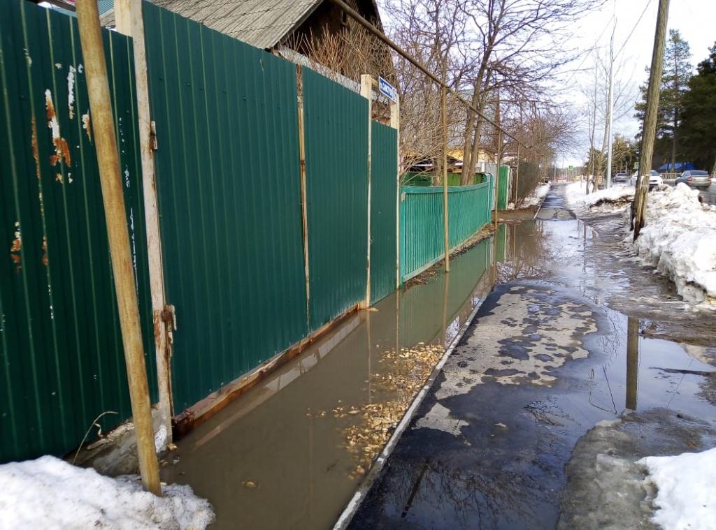 Все канавы вдоль дороги были сделаны из бетона. То, что вода будет выходить и из дворов, в проекте новой дороги не было предусмотрено. Об удобстве для жителей не подумали. У нас, в доме на Самстроя, 8 затопило ограду и тротуар, талая вода бежит как с огорода, так и с самой проезжей части.