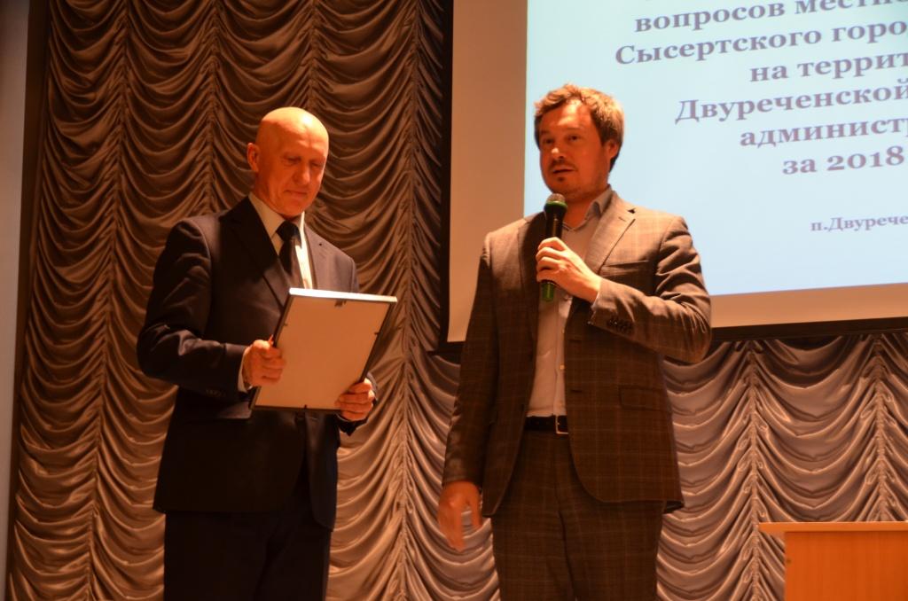 Второй в череде сельских сходов стала встреча жителей с главой СГО Д. А. Нисковских в поселке Двуреченск. Началась она с благодарности бывшему поселковому главе Г. А. Румянцеву, который недавно ушел на заслуженный отдых. В своем ответном слове Георгий Анатольевич сказал спасибо руководителям предприятий и организаций, коллегам и жителям – всем и каждому, кто поддерживал администрацию в ее начинаниях, оказывал помощь в благоустройстве и прочих делах на благо поселка.