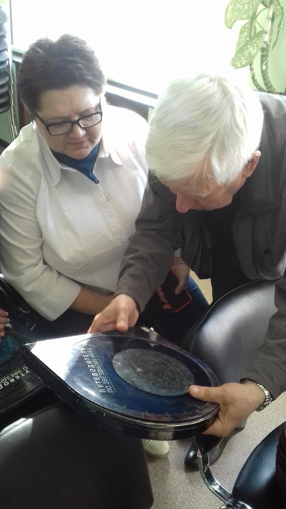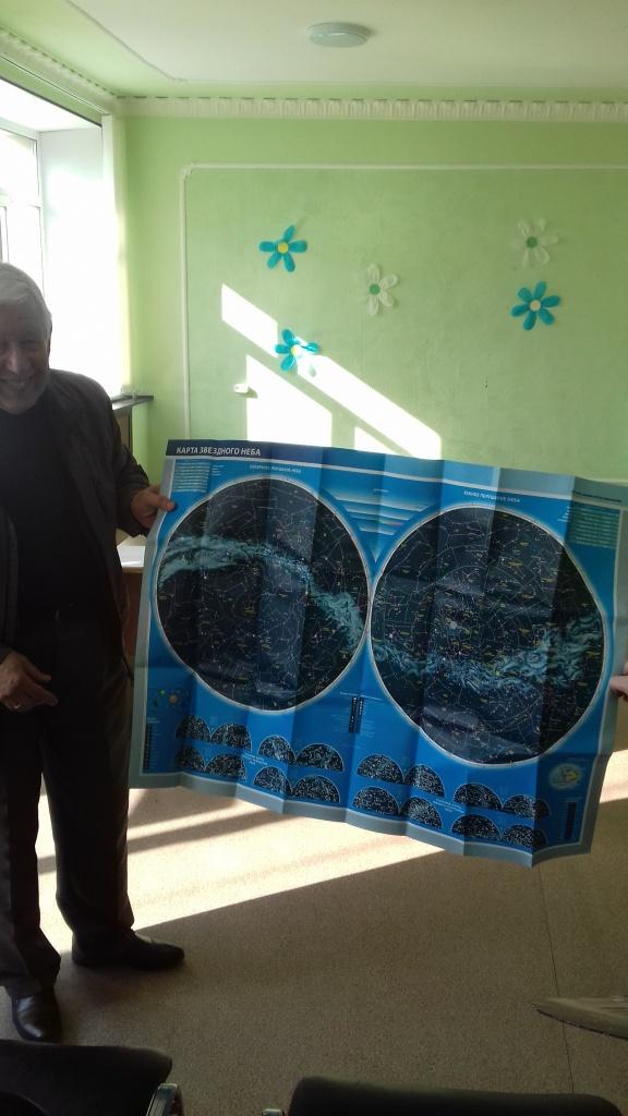 В гости пригласили жителя поселка Александра Григорьевича Черданцева. До пенсии он работал медиком – гигиенистом, а выйдя на заслуженный отдых, серьезно увлекся изучением материалов о космосе, вселенной, звездах. Он ночами наблюдает за небом, созвездиями, луной в настоящий телескоп. В личной библиотеке у семьи огромное количество книг, журналов, небесных карт и специальных приборов.
