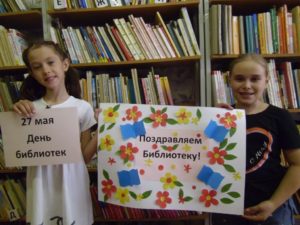 27 мая с профессиональным праздником сотрудников библиотеки для детей и юношества пришли поздравить ученики 3 класса школы N1.