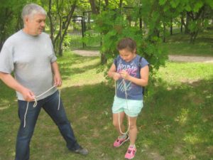 День начался с физической зарядки, которую провели под музыку вожатые. После вкусного завтрака ребят ждала эстафета «Туристическая тропа», которую подготовили и провели учителя К. Б. Зудихин и К. А. Козырев.