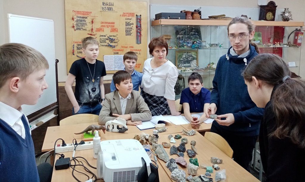 Никита Одношевин – студент-геолог колледжа Ползунова – сначала участник, а сейчас судья нашего турнира, привез десятки минералов и горных пород, провел мастер-класс по минералогии.