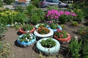 За два года она создала такую красоту! Хорошо, что она не одна: водичку для полива ей дают работники предприятия «Окна, двери», расположенного в подвальном помещении этого дома. Хотя есть и другие «друзья»: часто вижу, как собачники выводят по утрам своих питомцев «погулять» на ухоженный участок. А кто-то не прочь и сорвать цветочек – другой…