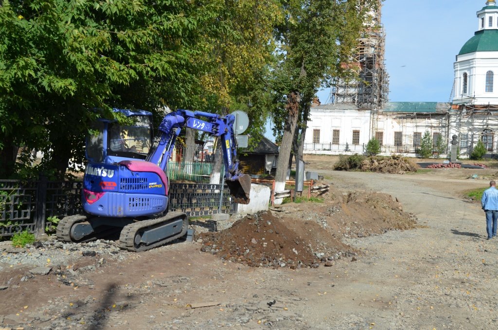 На снимках: 11 сентября 2020 года: идут работы по реконструкции исторического центра Сысерти