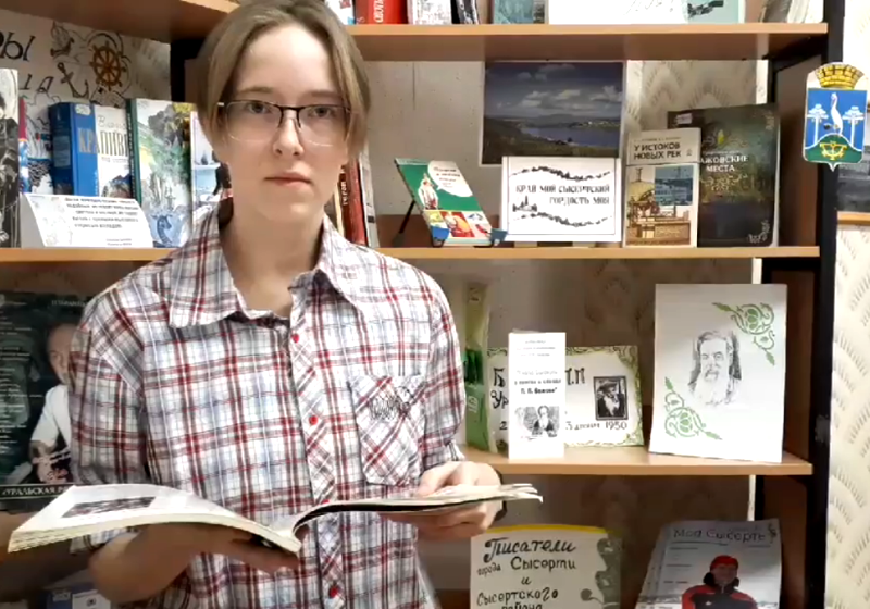 Читатели нашей библиотеки, старшеклассники из школы №6 и техникума «Родник»: М. Зайкова, Е. Осминина, Д. Устинов и А. Панасюк, приняли участие в поэтический челлендже «Бажовские края». Они прочитали стихи из сборника «Благославенна земля Бажова». Прозвучали произведения местных авторов, членов литературного клуба «Открытие»: С. Ситковской «Моя Сысерть», М. Бегуновой «Родина Сказов», В. Пажетнова «По сказам Павла Петровича Бажова», В. Ефремова «Живинке» слово». (Вконтакте «Читаем полевских поэтов» https://vk.com/chitaem_polevskih_poetov?w=wall-198734372_243 )