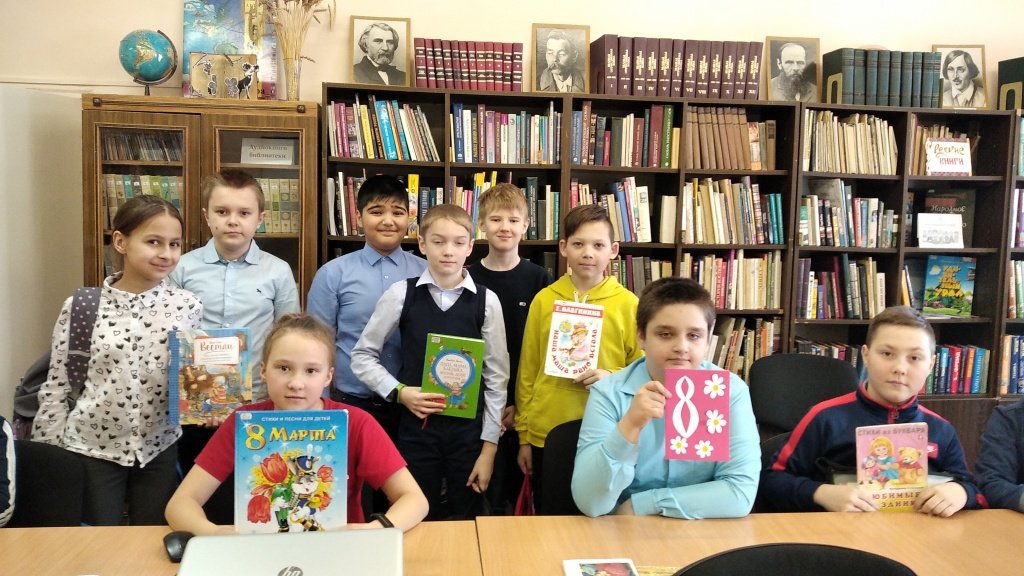 Накануне 8 марта в библиотеке для детей и юношества прошла литературно-игровая программа «Праздник самых милых дам – бабушек, сестренок, мам». В библиотеку пришли дети 3-4 классов из школы№6. Ведущая, автор этих строк, Мария Владимировна Лыжина торжественно начала со стихотворения Татьяны Волгиной «Наступает мамин праздник».