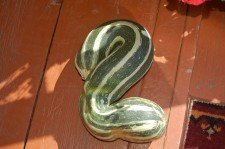 Пришло время собирать урожай на огороде. На грядке вместе с «нормальными» кабачками притаился этот странный тип. Видимо, запутался в листьях да корневищах и приобрел такую форму. Мы его всей семьей перекрутили: с одной стороны кабачок похож на цифру «пять», а если перевернуть, то вылитая «двойка»!