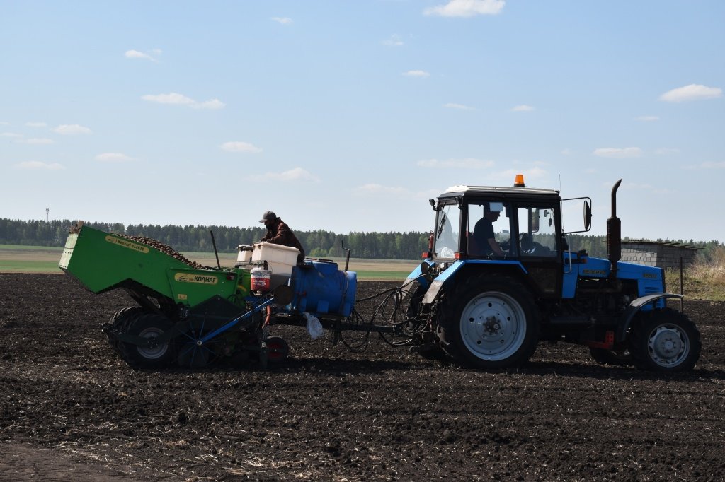 Предварительно на базе под руководством агронома Ляйсан Рафаэловны Миндияровой идет подготовка семенного материала: чтобы не попало гнилого или резанного, клубень к клубню. Каждый обрабатывается средствами защиты – от колорадского жука, проволочника и других картофельных болячек.