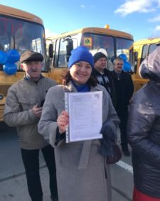 Заветные ключи от нового автобуса получила школа №8 села Кашино, которая подвозит на учебу 130 детей из Токарева, Черданцева, Кадникова, коттеджного поселка «Заповедник».
