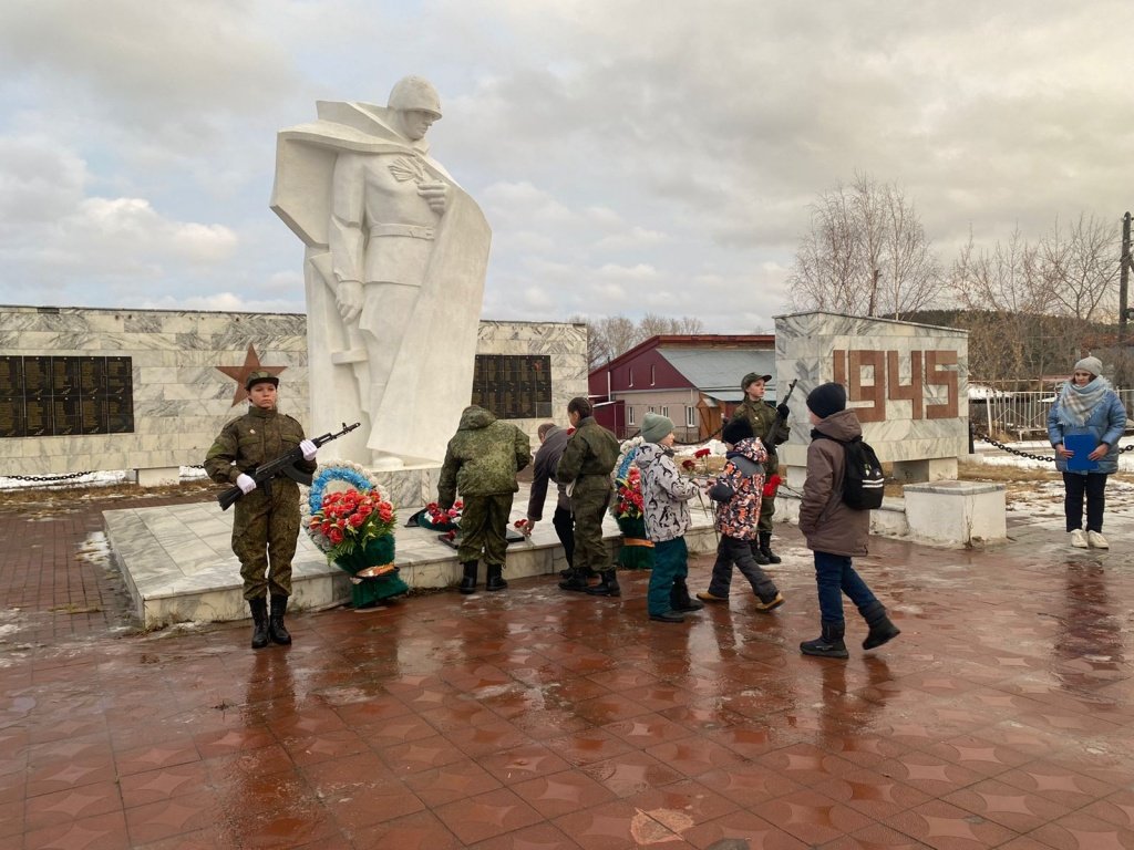 4 декабря учащиеся ЦВР и школы №1, родители, педагоги и военно-патриотический клуб «Щит» провели торжественный митинг у Памятника воину в Сысерти.