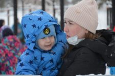 Стою около стартовой линии. Уход на дистанцию почти каждой лыжницы сопровождается криками болельщиков «Давай!». Откуда-то сбоку слышу женский голос «Давай, Полина!», а затем детский голосочек с таким же возгласом. Это, как оказалось, Валентина Юрьевна и юный Салават на ее руках (на снимке). Кричат они в поддержку Полины Черепановой из Сысерти. А сами из Кашино, но тоже Черепановы. «А почему же Полину поддерживаете?» – удивляюсь.