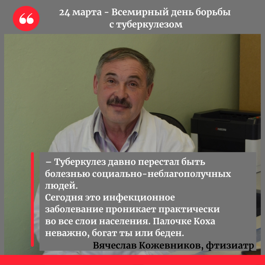 Ежегодно, 24 марта, во всем мире отмечается день борьбы с туберкулезом. Именно в этот день в 1882 году немецкий микробиолог Роберт Кох открыл возбудитель заболевания. Сегодня мы вместе с фтизиатром Сысертской ЦРБ Вячеславом Николаевичем Кожевниковым рассказываем, что это за болезнь и как обезопасить себя от заражения.
