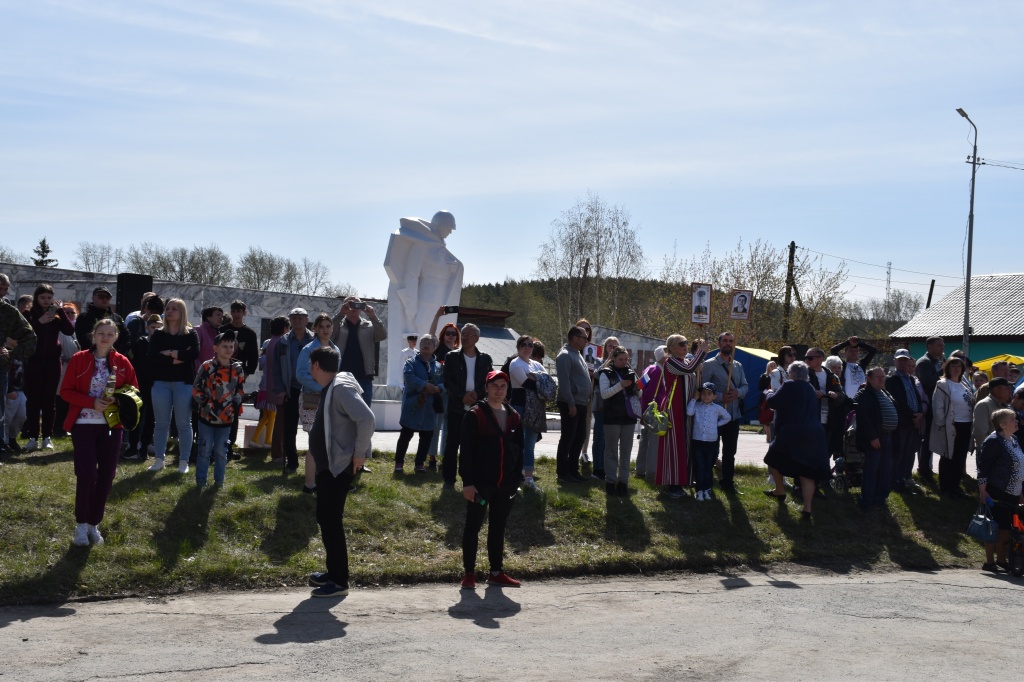 Безусловно, украшением сысертской колонны по традиции является кадетский корпус. Жаль, уже без духового оркестра. Но барабанщики отбивают ритм, а в самой колонне запевают: «Расцветали яблони и груши».