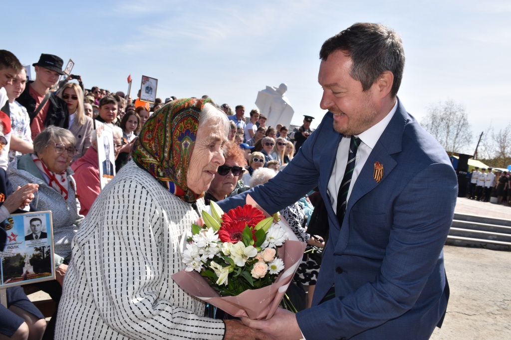 Для ветеранов подготовили скамеечки, чтобы им хватило сил посмотреть все мероприятие. Во время своего выступления глава округа Д. А. Нисковских поздравил с 95-летием жительницу Сысерти, труженицу тыла Елену Ивановну Горшкову, вручил ей букет. Позже выяснилось, что глава был не единственным мужчиной, подарившим в этот день цветы Елене Ивановне. У нее нашлись на празднике и более юные поклонники.