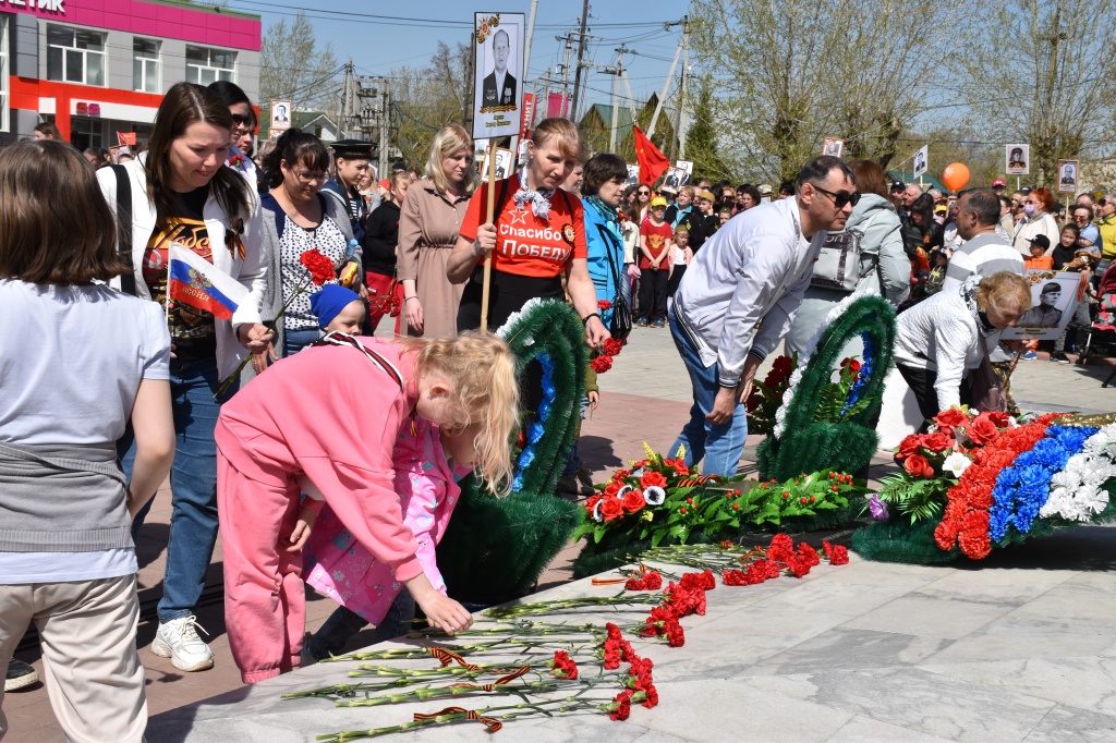 Шарики, гимнастерки, флаги. Кто в футболке со Сталиным на груди и надписью «Враг будет разбит, победа будет за нами». Кто с императором Николаем 2 на флаге и надписью «Слава России», кто с символикой сегодняшнего дня – «Z», «За наших». Кто с советскими значками, кто крестится, возлагая цветы к солдату. Мы разные, но всех объединяет общая Победа.