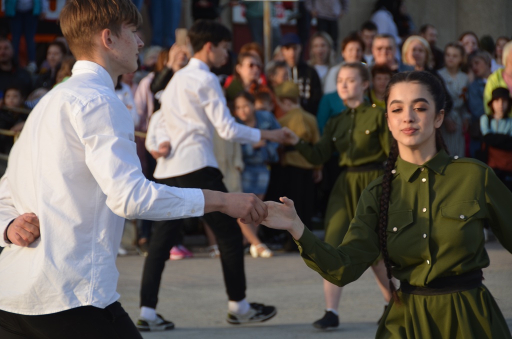 Праздничный день 9 Мая в 19 часов вечера в Сысерти продолжился акцией «Вальс Победы». Он у нас уже, можно сказать, традиционный. Просто в последние два года по известным причинам не проводился.