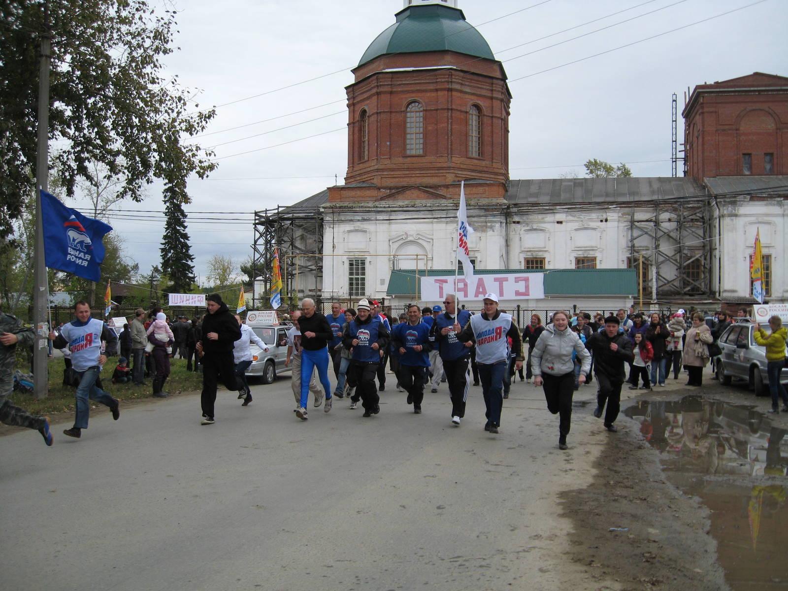 Администрации СГО и местного отделения партии «Единая Россия». Также призы Сысертской ТИК были вручены самому юному бегуну Артему Трофимову и самому старшему 82–летнему А. Н. Лобову.
