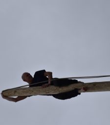 Много народу, очень много молодежи, еще больше детей, для которых было приготовлено множество игровых площадок. Дети в мешках, вернее, в больших пакетах с ручками бегали, подушками на бревне бились, в гигантские шашки играли, «блины» собирали, в огромных башмаках ходить пытались и еще, и еще… Про качели-карусели, надувные батуты я уж и не говорю. Наконец, с огромнейшим удовольствием валялись в кучах соломы в фотозоне и в других местах, где она была навалена для смягчения падения участников различных шуточных и вполне себе серьезных испытаний. Как, например, под столбом для лазания за призом. В прежние годы наградой самому ловкому и смелому, поднявшемуся до вершины столба, бывали петух, поросенок. А нынче главным призом был телевизор. И достался он Евгению Найденову! Ибо только ему единственному столб покорился, хотя пыталось на него взобраться с десяток молодых людей. Да так ловко он это сделал, так красиво – цепляясь за вершинку столба еще и «круг почета» наверху совершил, перебирая босыми ногами. Молодец! – одно слово.