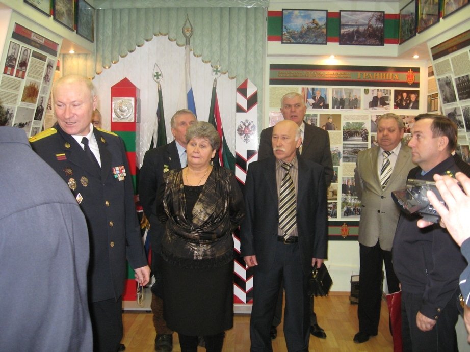 После открытия музея председатель Совета СООО ВПС «Граница» подполковник запаса Г. Х. Сафиуллин ознакомил собравшихся со стендами и экспонатами, посвященными славным делам пограничников области, на примерах которых прослеживается героическая летопись пограничных войск, начиная с Отдельного корпуса пограничной стражи Российской империи и до наших дней. О своей коллекции пограничных шевронов рассказал А. А Павлушев, о выставке казачьих и пограничных медалей и знаков – А.А.Федулов …